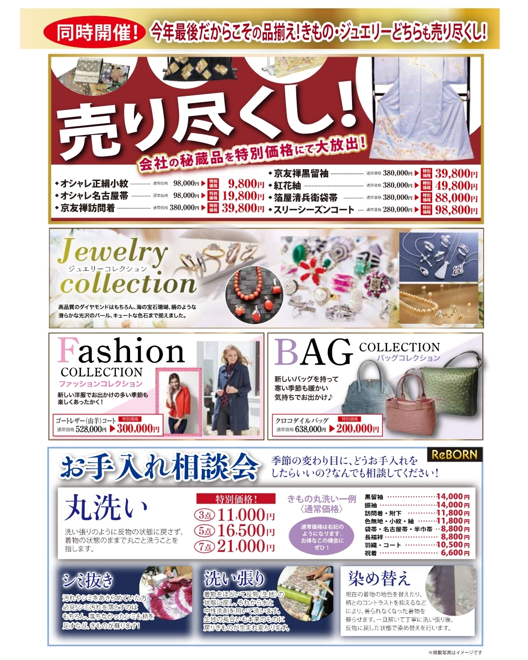 会社秘蔵の逸品や、高級ジュエリー・バッグ・コートなど、きものと小物も特別価格で大放出!