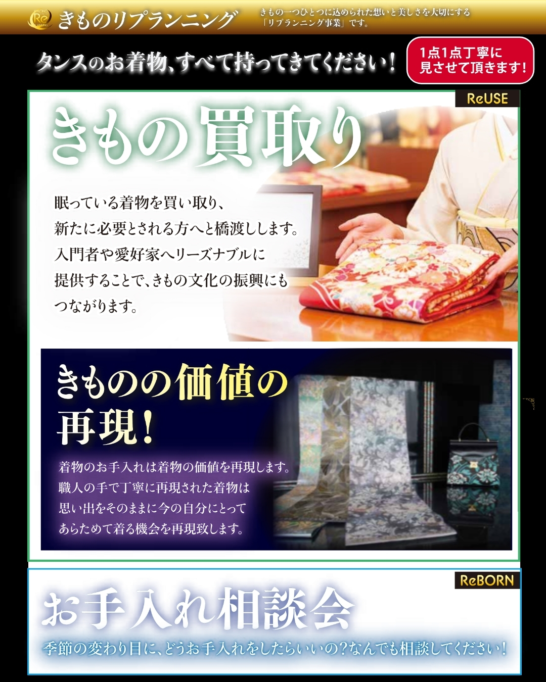 本きもの松葉では、その想いを未来へつなぐ【リ・プランニング事業】を展開しています。